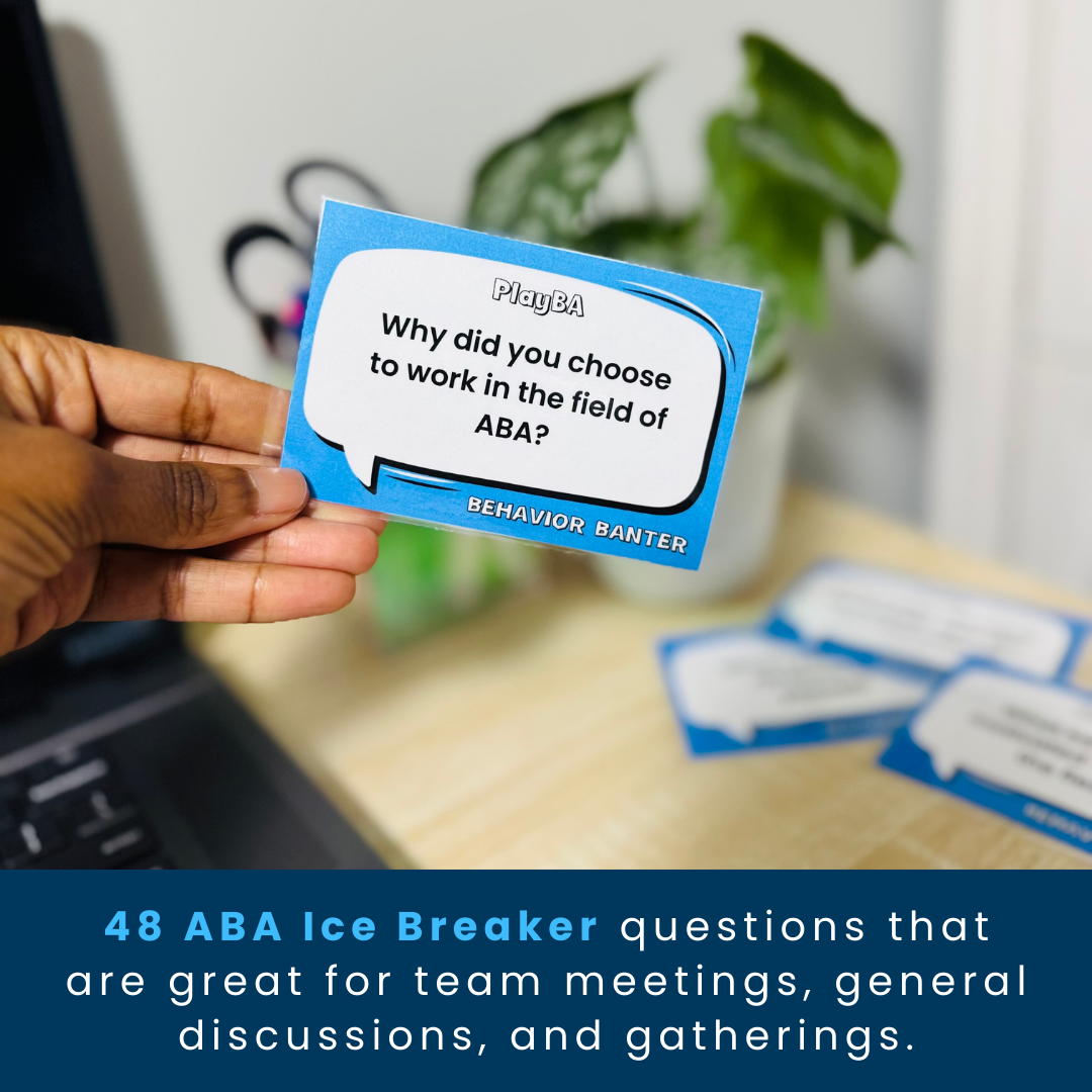 Behavior Banter was designed to spark meaningful (and sometimes hilarious) conversations among behavior analysts, technicians, and ABA enthusiasts. Whether you’re at a team meeting, supervision, conference, or just hanging out with coworkers, these cards help you connect, reflect, and share stories from the field in a fun, relaxed way. No competition, no points — just conversation, connection, and plenty of inside jokes only ABA folks will understand.