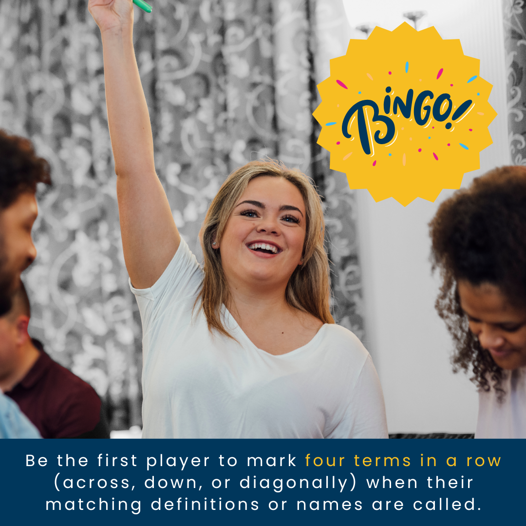 Be the first player to mark five correct terms in a row — horizontally, vertically, or diagonally — to win the round.