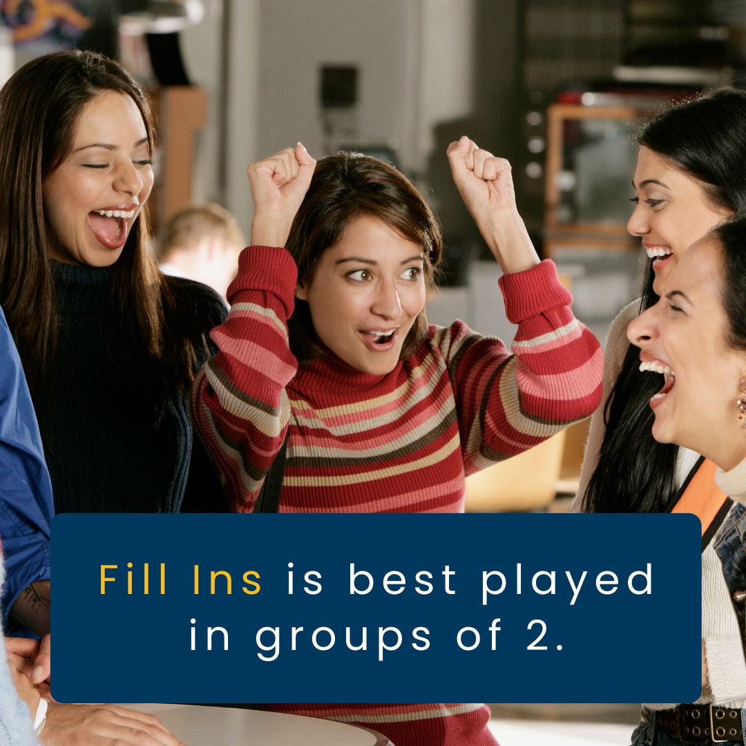 Fill Ins is a fast-paced pairing game where players race the clock to turn simple words into matching phrases. Each round lasts just 30 seconds, pushing partners to think quickly, connect creatively, and stay perfectly in sync. Draw a word, add a beginning or ending to form a phrase, and hope your partner thinks the same way you do. The more matches you make, the higher your score!